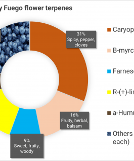 Blueberry Fuego enchants with its blueberry muffin essence, elevated by a vibrant twist and a lingering sweet finish. Crafted by Seed Junky Genetics and nurtured by Noble Growth, its genetic blend of Wedding Crasher and Slurricane produces a THC content of 23%-32%. This strain is notably rich in humulene, caryophyllene, and myrcene, enhancing its aromatic bouquet and therapeutic potential, making it a tantalizing choice for those seeking a blend of fruity sweetness with a robust finish.